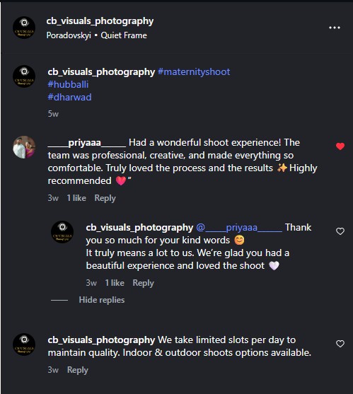 “Had a wonderful shoot experience! The team was professional, creative, and made everything so comfortable. Truly loved the process and the results ✨Highly recommended ❤️”.”
